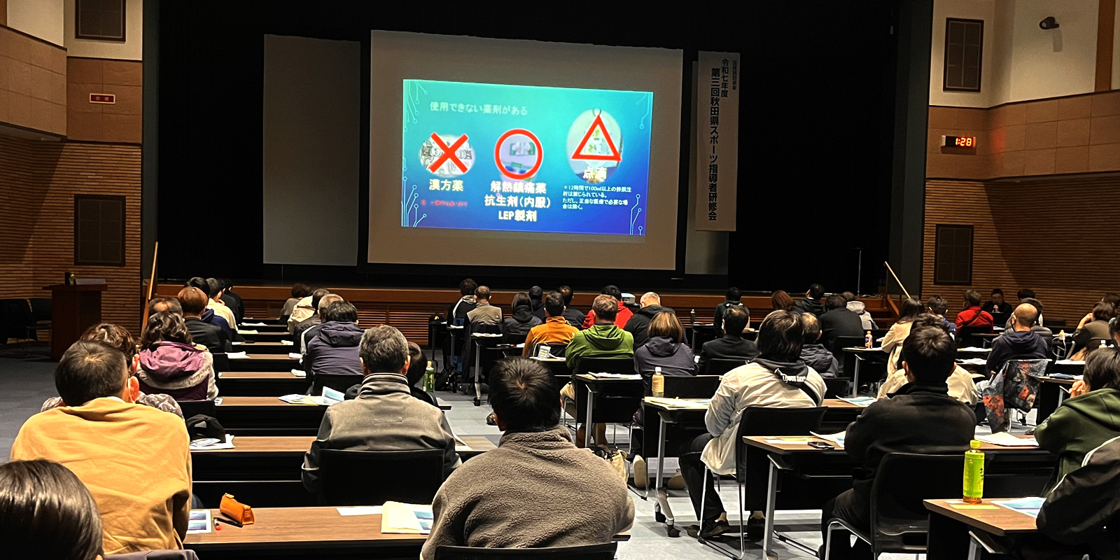 今回の研修会では、講演Ⅰとして、ゆうきクリニック院長の下田勇輝先生を講師に迎え、「女性アスリートの心と体のSOSに気づくために」をテーマにご講演をいただきました。下田先生からは「月経に伴う不調、影響をなくすためにはどうしたらいいか」や「アンチドーピングや低容量ピルについて」などのお話しがありました。